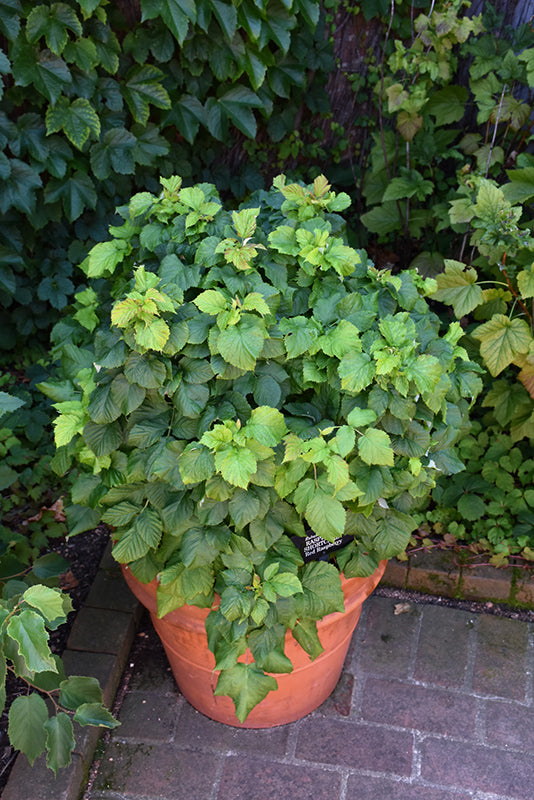 A smaller variety producing full size red fruit with delicious flavor, and no thorns to deal with; great for containers as well as smaller garden spaces; needs regular pruning and protection from birds